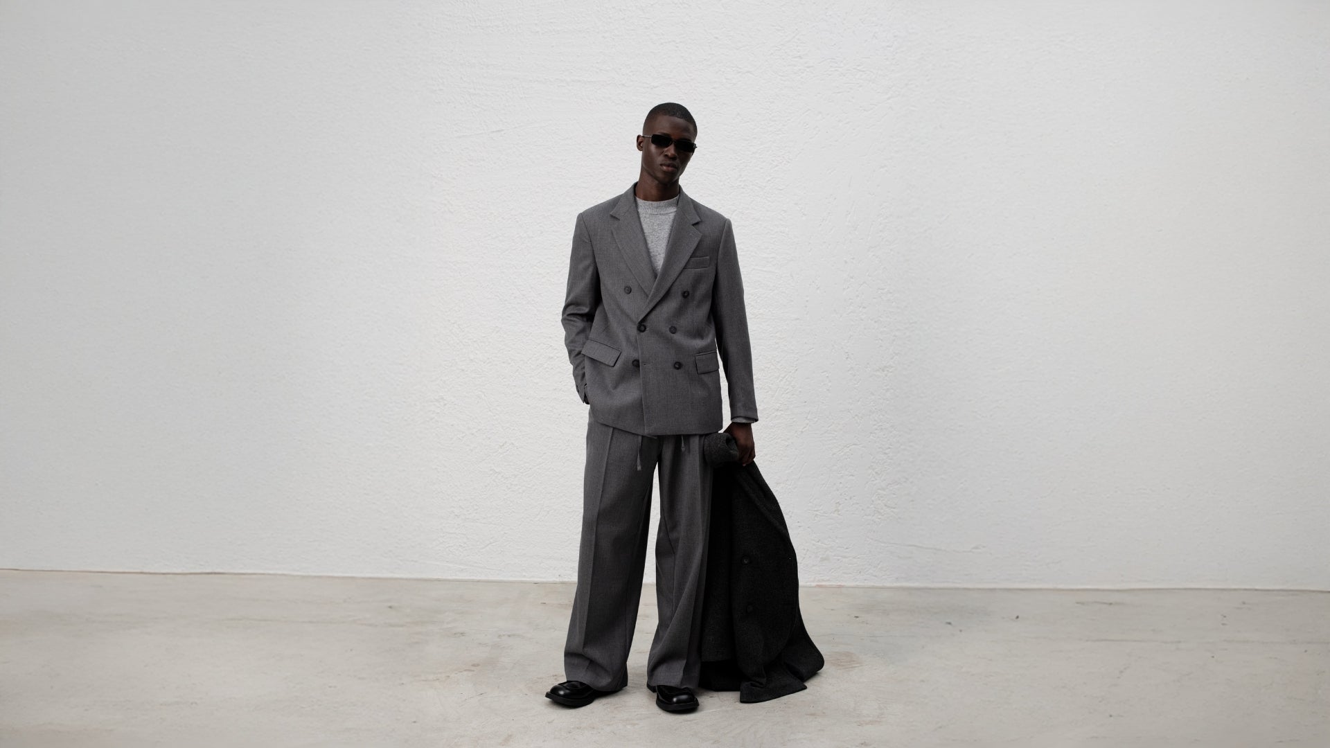 Oversized Double-Breasted Coat - Grey